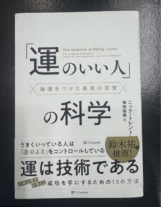 アメリカのライフコーチNick Trentonさんの「「運のいい人」の科学」(SBクリエイティブ 桜田直美訳2025.3.15)を読みました。