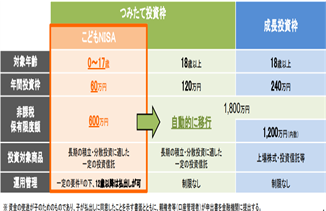 その際、格差の固定化につながらないよう配慮しつつ、長期・安定的な投資を通じて、大学進学等、成人後のライフイベントに伴う必要資金を備えられるよう、口座保有者である子が0~17歳までの間については、年間投資枠は60万円、非課税保有限度額は600万円とします。