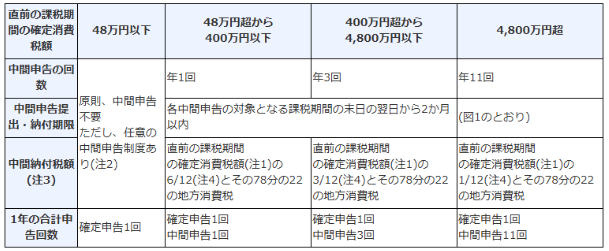 特に4,800万円を超える場合の申告・納付回数については11回となっており、対象期間についても明確に決められているため注意が必要です。